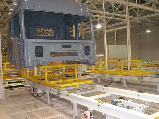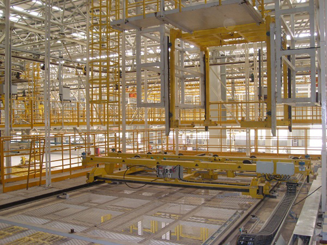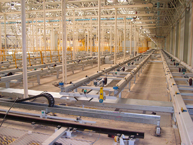 此項目為滑撬線體加移載小車和升降機,將涂裝車間的車頭移載到存儲區,根據總裝需求再移載下降到地面總裝。